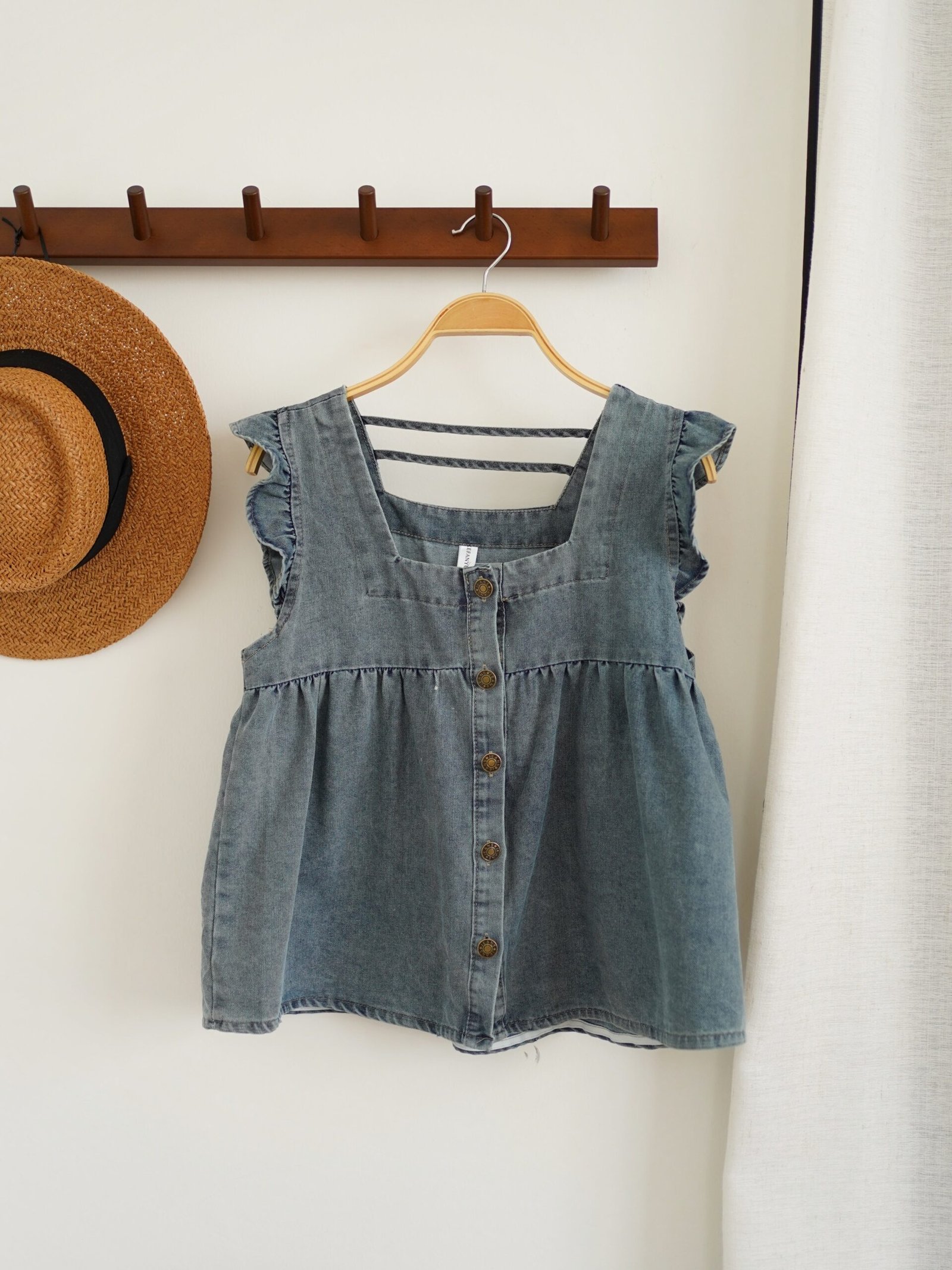 Feminine flair meets casual chic in the Denim Ruffle Top. Designed with soft-washed denim and decorated with graceful ruffle detailing at the sleeves or neckline, this top adds a stylish touch to a basic wardrobe staple. The breathable material and lightweight construction make it ideal for warmer weather, while the structured yet comfortable silhouette flatters a variety of body types. Pair it with white pants for a crisp look or go for a full denim-on-denim style. Whether you’re out for lunch or enjoying a casual evening, this top adds a touch of elegance to classic denim fashion.